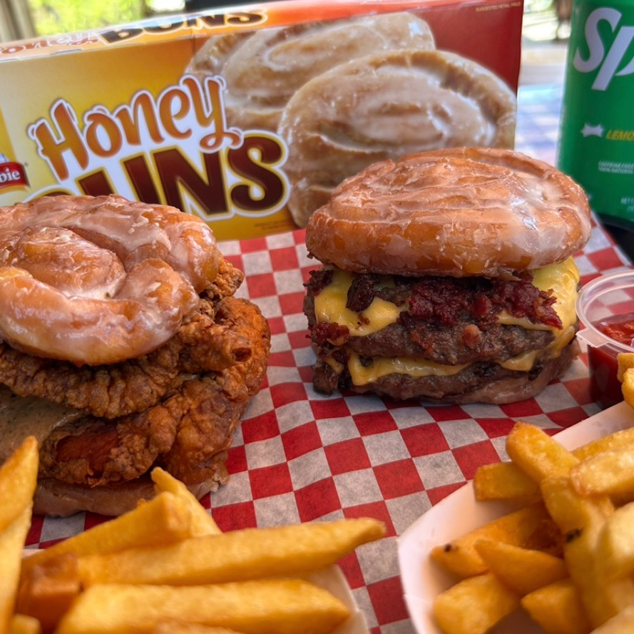 1 Large burger w/ 8 patties, bacon, cheese, burger sauce, bbq sauce